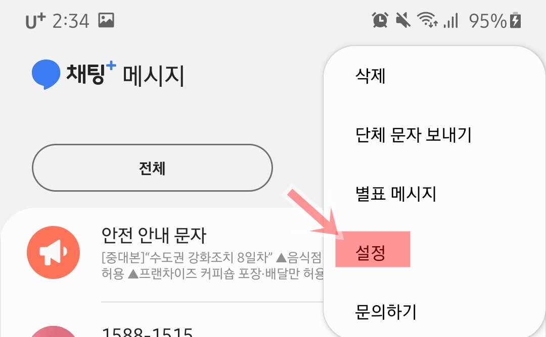 코로나19 안전 안내 문자 차단 및 푸는 방법