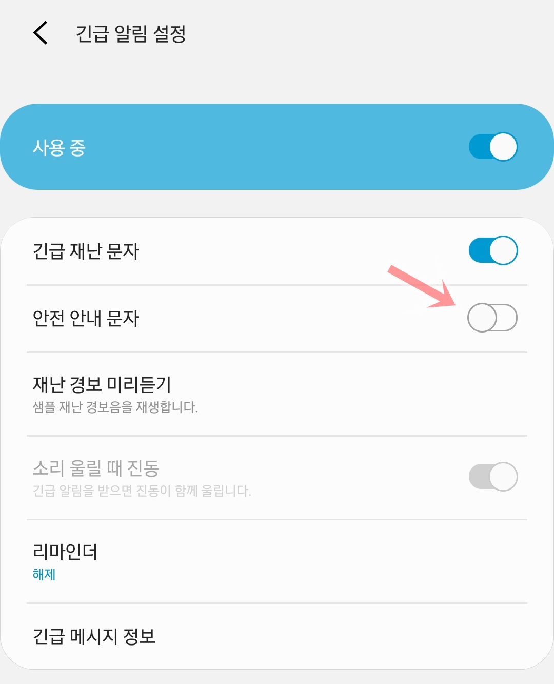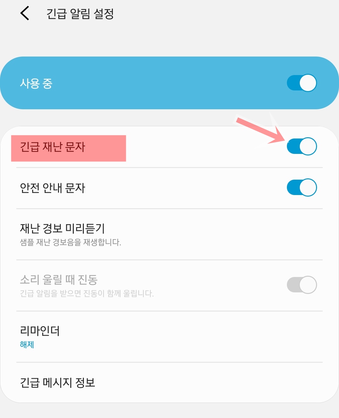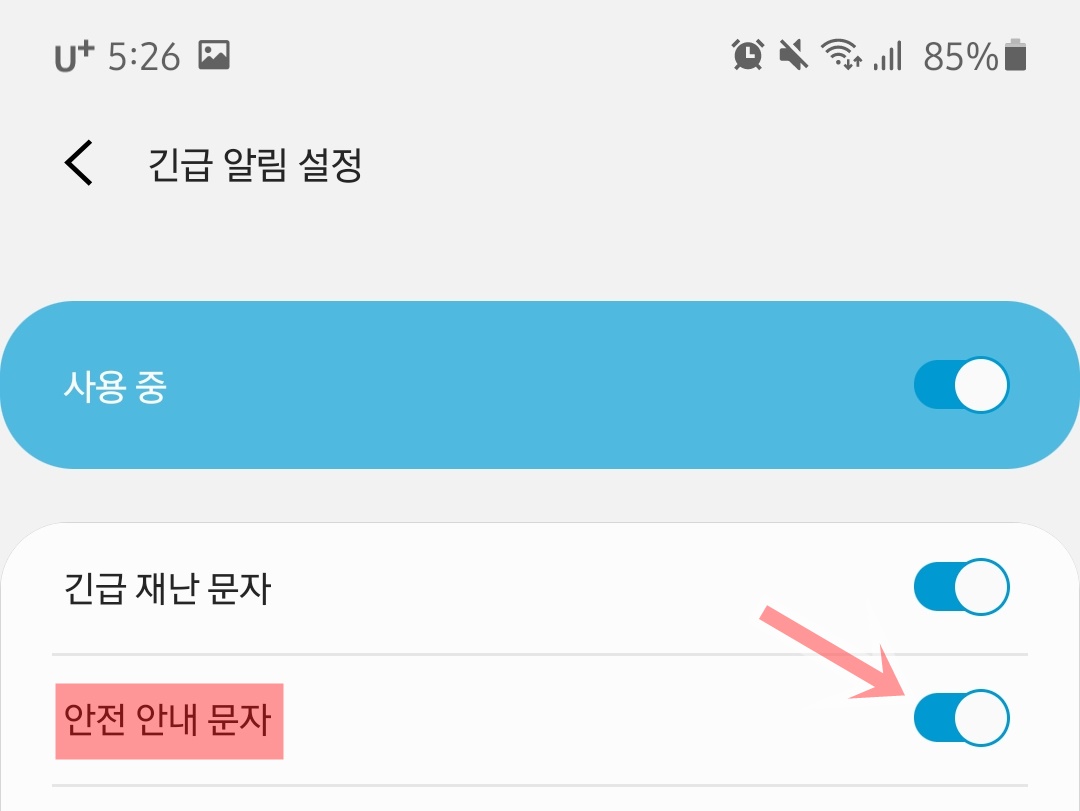 긴급재난문자 차단하고 푸는 방법