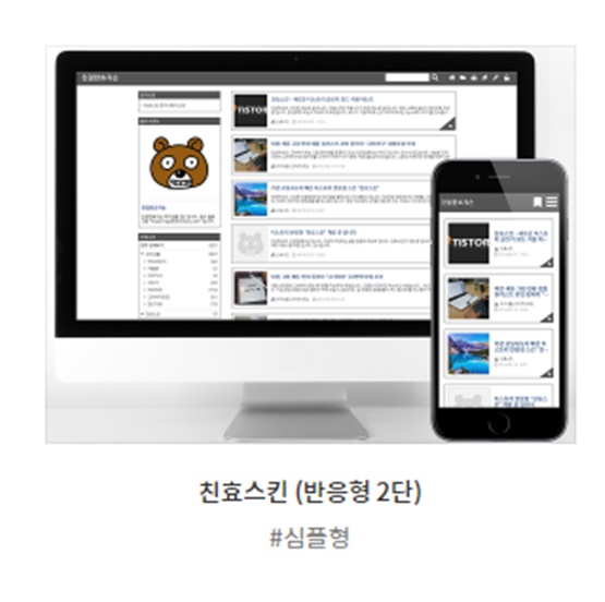 필자가 추천하는 티스토리 반응형 스킨 입니다 첫번째? 1순위로 손꼽히는 반응형 스킨은 친효스킨 입니다 사용자가 원하는대로 스타일을 꾸밀수 있도록 제작된 스킨 입니다 간략하게 얘기하자면 애드센스 광고를 구석구석 배치를 시킬수 있어서 좀 더 나은 광고 수익을 올릴수 있다는점에서 애드센스의 최적화가 되어있다고 보시면 됩니다
