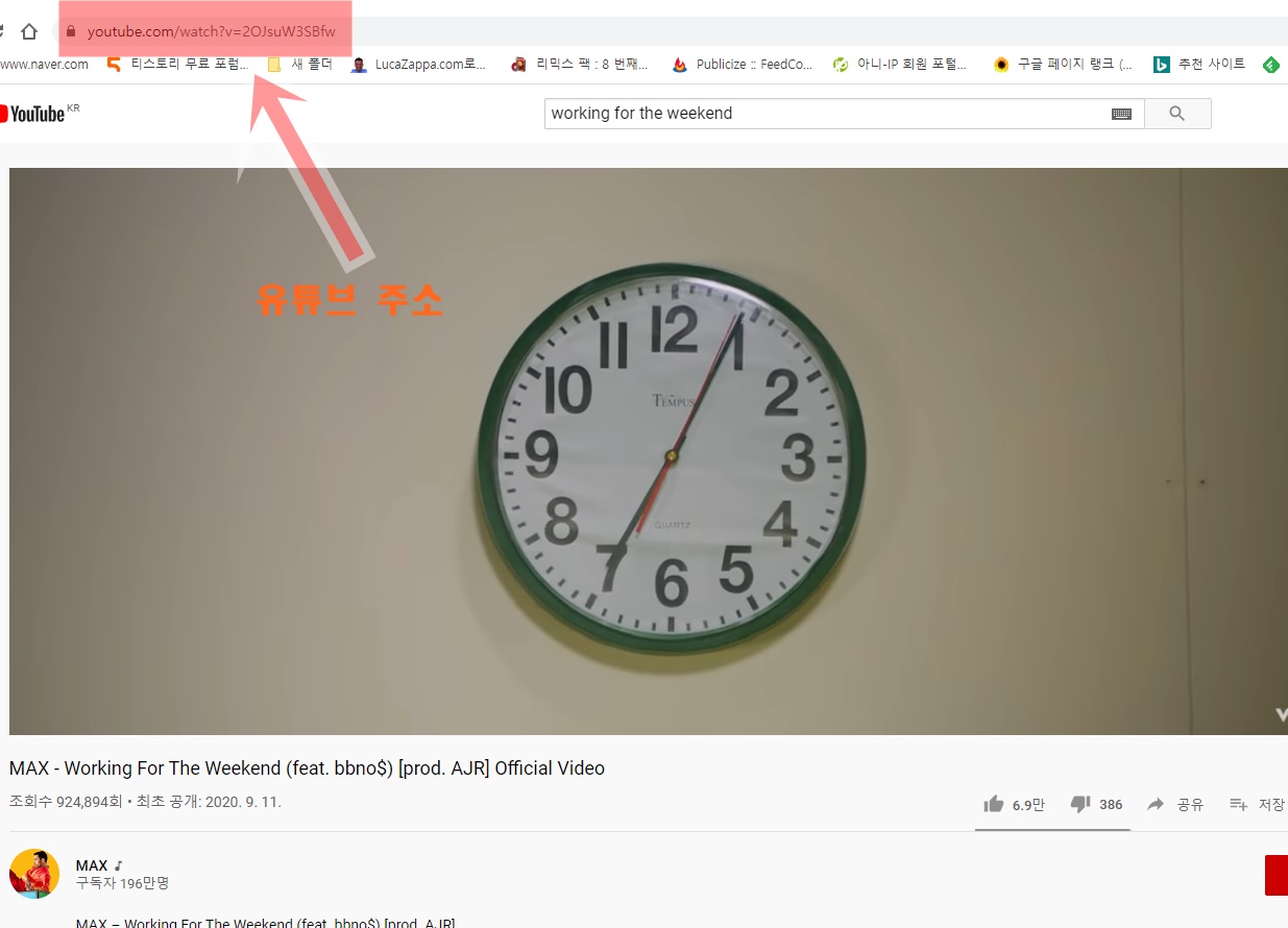 유튜브 동영상을 다운로드해보겠습니다 유튜브 사이트에 가서 다운로드 받고 싶은 동영상을 재생합니다 그리고 상단 좌측에 유튜브 주소를 모두 복사 합니다