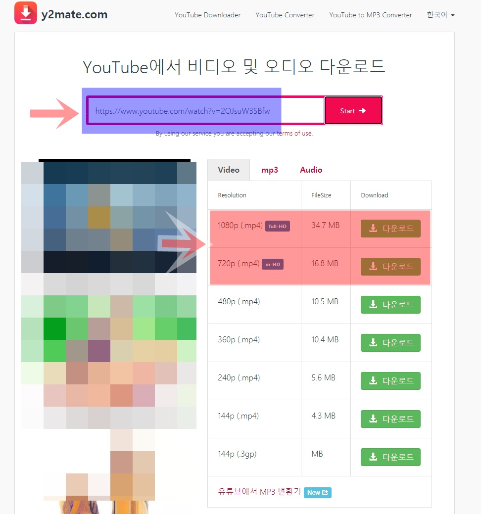 복사한 유튜브 주소는 y2mate 유튜브 다운로드 사이트에 와서 붙여넣기를 하시면 변환이 시작 됩니다