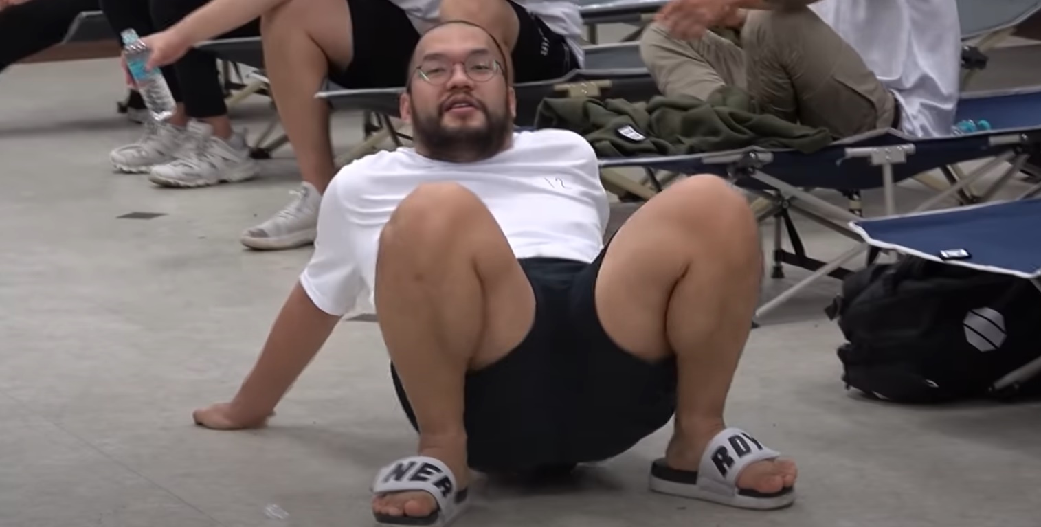 그 와중에 윽박이랑 홍구는 몸을 풀어야 한다고 간단하게 스트레칭을 하고 있습니다