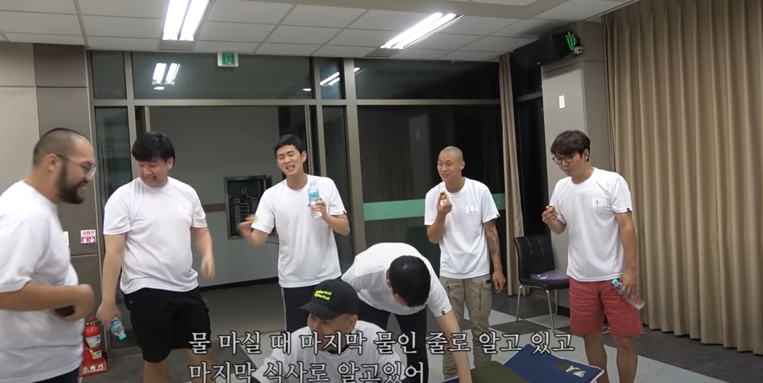 계약서를 다 쓰고 푹 자라는 교관의 말에 다음날에 훈련을 받을줄 알았던 교육생들은 웃고 떠들고 최후의 만찬을 즐기고 있습니다