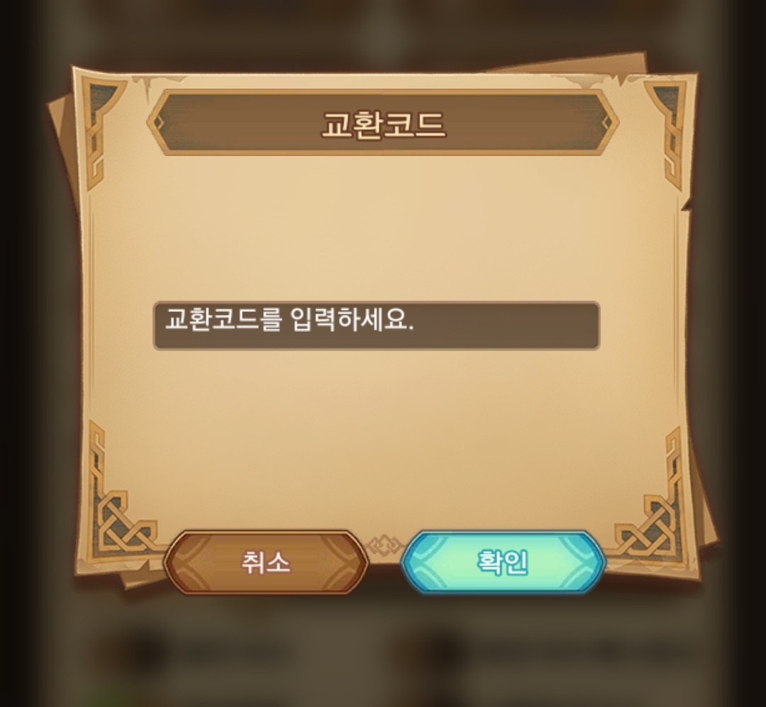교환코드를 입력하세요 빈 칸에 쿠폰번호를 입력하시고 확인을 누르시면 끝납니다
