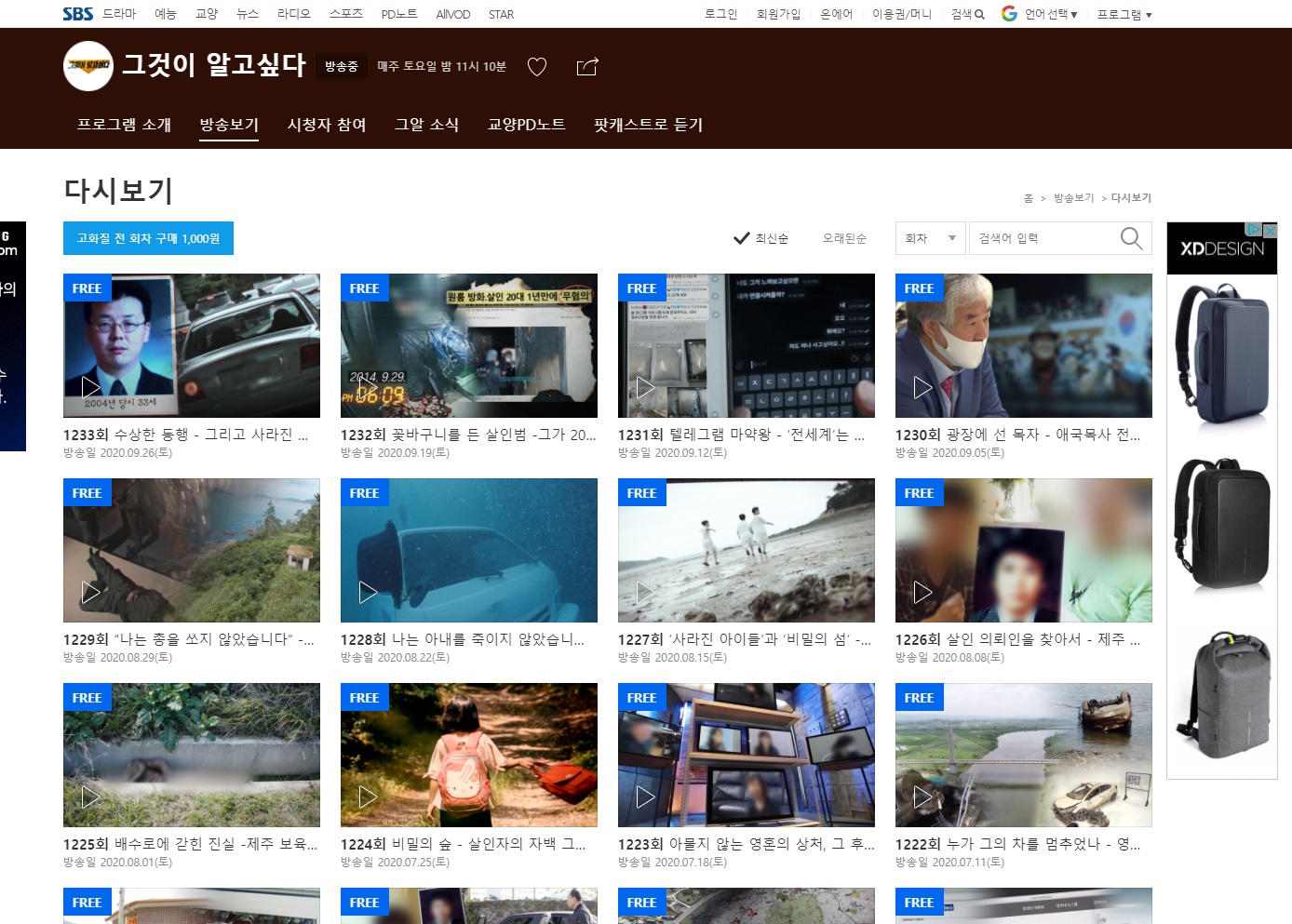 SBS 교양 프로그램 그것이 알고 싶다 다시보기 방법 입니다 회원가입 로그인 없이 저화질이나 고화질로 보는 방법 입니다 이 회를 꼭 봐야 하는데 생방송을 못 보신분들한테 도움이 되실 겁니다 이제는 며칠 뒤에 보시지 않아도 생방송이 끝난 뒤에 바로 다시보기를 할수 있습니다