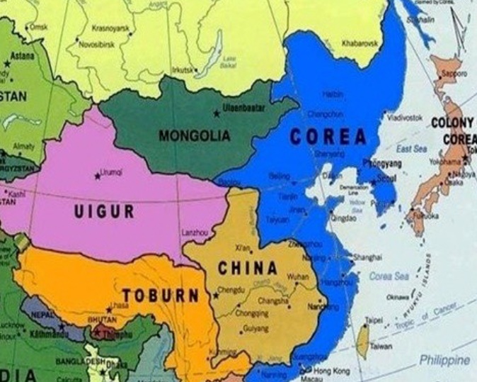 지도를 보면 한국이 중국과 일본을 장악했다 일본은 한국의 식민지로 예언을 했으며 중국 영토의 1/3이상을 차지 했다