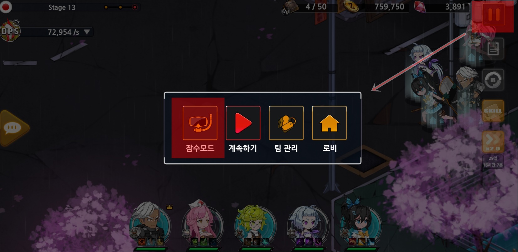 스테이지에 들어간뒤 우측에 ㅣㅣ 버튼을 눌러 잠수모드를 합니다
