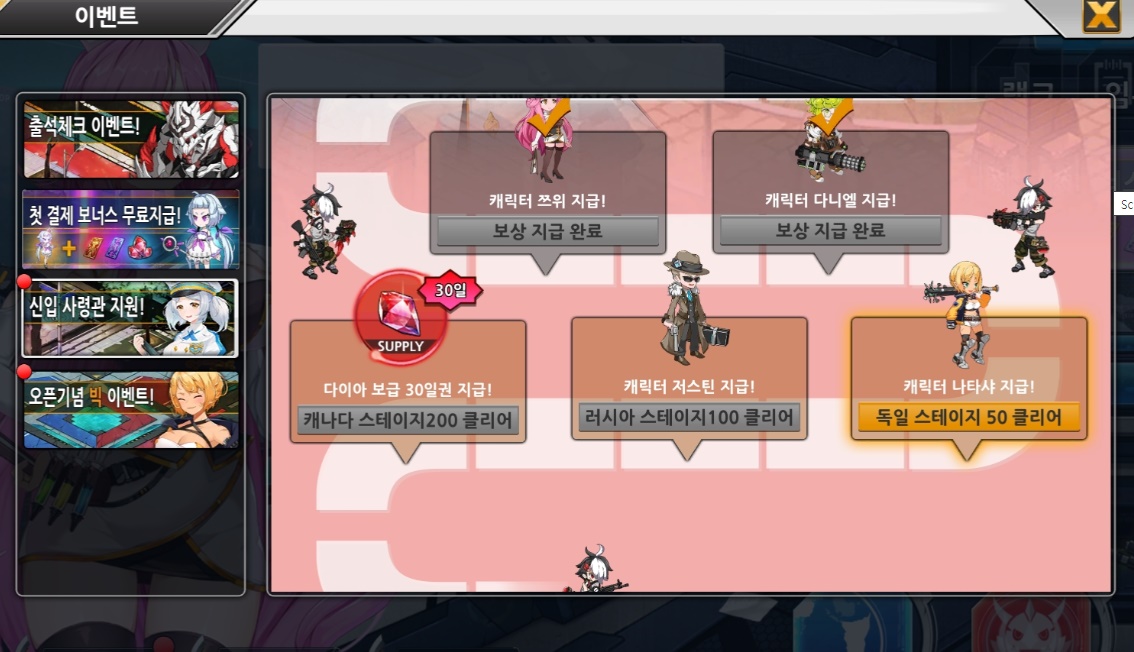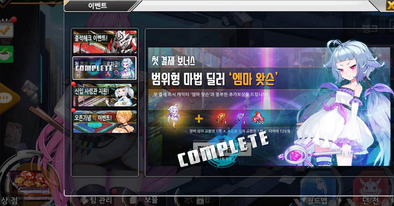 엠마는 광역 딜러 입니다 빠르게 스테이지를 클리어하는데 정말 도움이 됩니다 엠마는 30일 출석 체크 이벤트로 주었는데 이번달은 목록에 아예 없습니다 그래서 첫 결제 보너스로 얻어야 합니다 1200만 결제 하면은 지급 받을수 있습니다