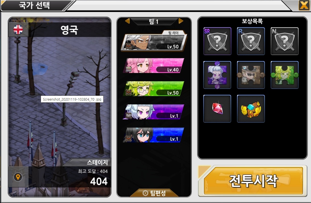 캐릭터 조각은 각 나라마다 나오는 조각이 다릅니다 진급시킬 캐릭터에 맞게 국가를 선택 하시면 됩니다