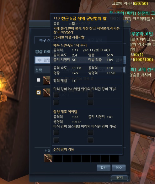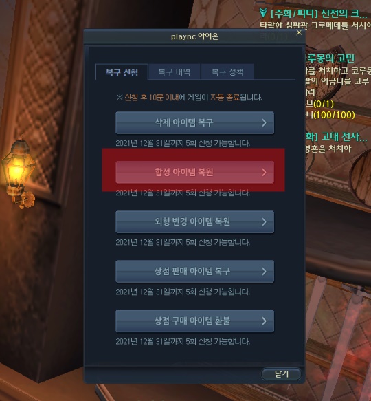 마지막으로 한번 더 합성 아이템 복원을 선택 합니다