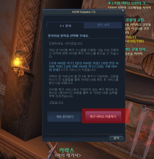 | 아이온 클래식 주화 장비[아이템] 복구 방법 (0) | 2021.03.03 |