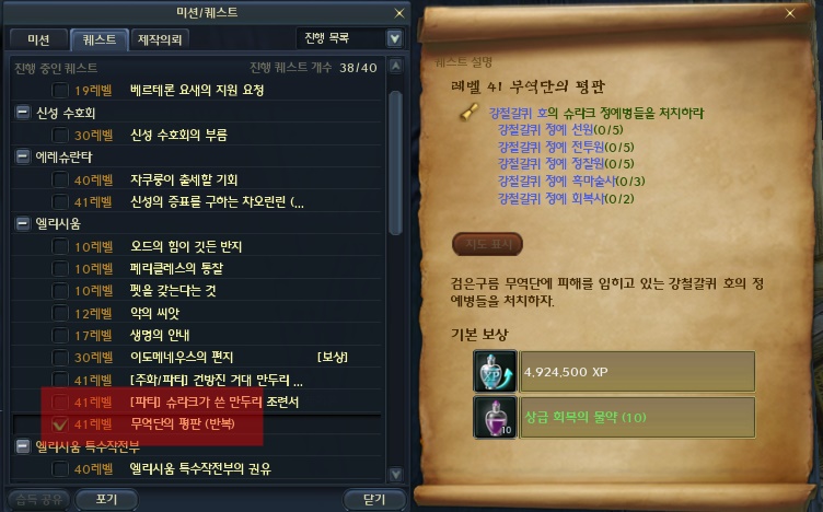 아이온 클래식 30레벨 ~ 43레벨 구간 추천 사냥터 반복 퀘스트?