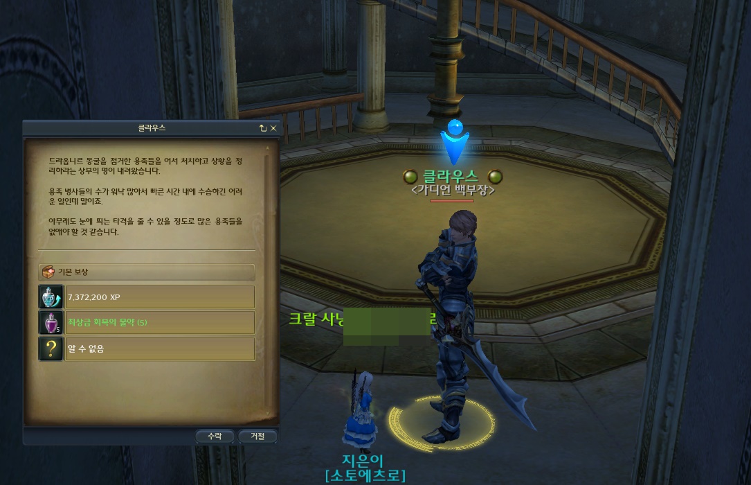 다음은 드라웁니르 동굴 반복 퀘스트 입니다 이 반복 퀘스트는 무려 700만이 넘습니다 42레벨부터 가능할거에여! 천족은 NPC 클라우스 '드라웁니르 소탕 명령' 퀘스트를 받으시고 마족은 NPC 아르트에게서 '드라웁니르 척살 명령'을 받으시면 됩니다