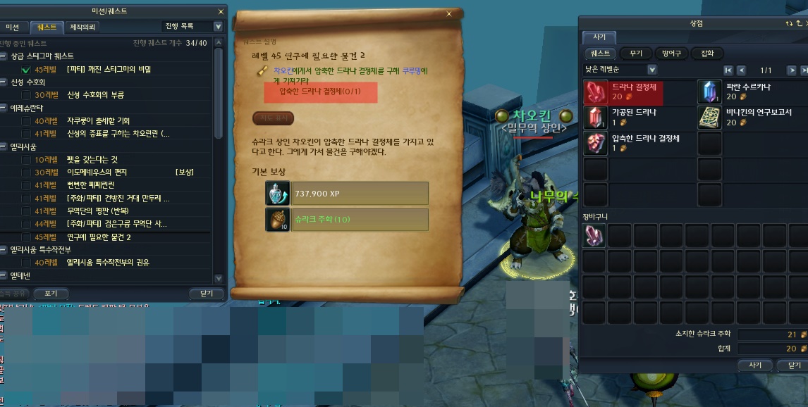그리고 다시 강철갈퀴 호 입장하는 장소로 가셔서 차오킨한테 드라나 결정체를 한개 삽니다 그런데 슈라크 주화가 없으시다고요? 그럼 슈라크 주화 일일 퀘스트를 진행안하신겁니다