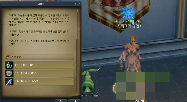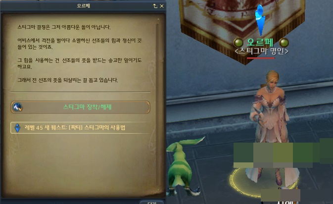 여기서 끝난게 아닙니다 다시 오르페 한테 말을 거셔서 [파티] 스티그마의 사용법 퀘스트를 받습니다