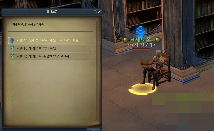 그리고 현자의 서고에 위치해 있는 크세노폰을 만나서 퀘스트를 말을 걸어줍니다