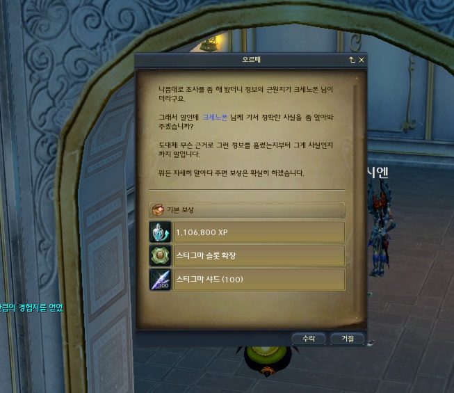 이제 다시 엘리시움 수호자의 전당에서 오르페 NPC한테 가셔서 퀘스트를 완료 하시면 됩니다