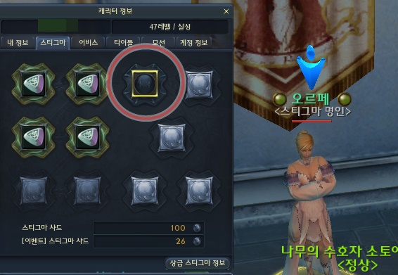 경치 백만과 스티그마 슬롯 확장 그리고 스티그마 샤드 100개를 줍니다