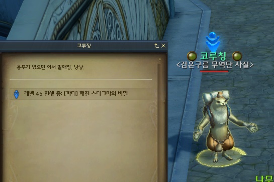 그리고 엘리시움 외항 근처에 있는 코루칭을 만나서 계속 퀘스트를 진행 합니다