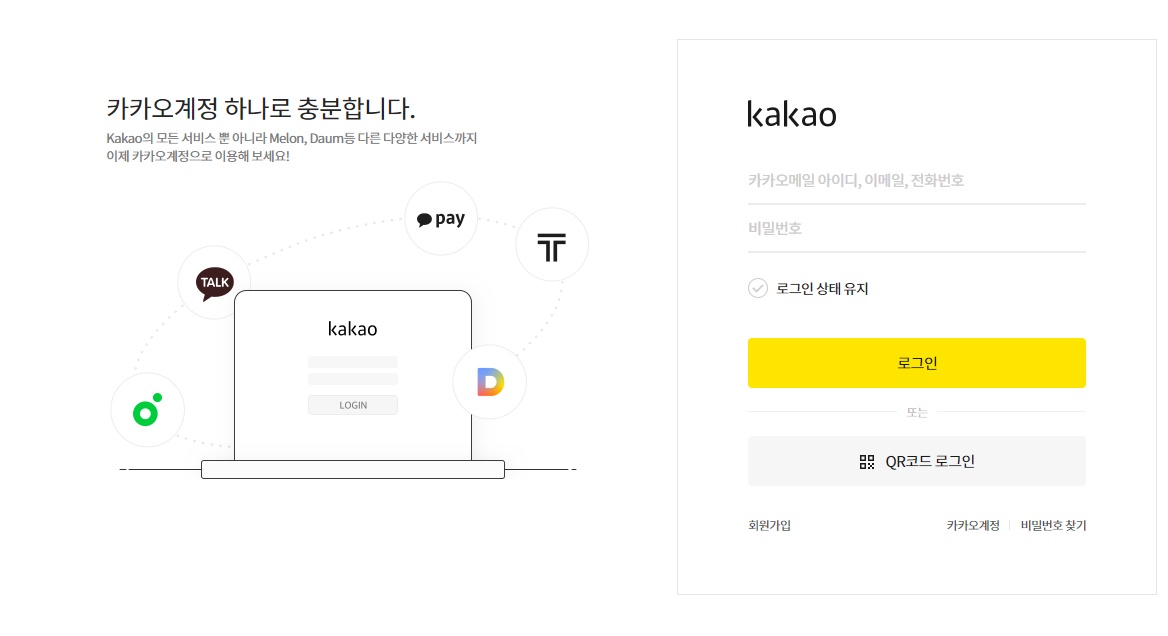 카카오 계정이 없으시면 여기 링크를 통해서 가입을 하시면 됩니다 카카오계정 만들기 사이트 - 링크