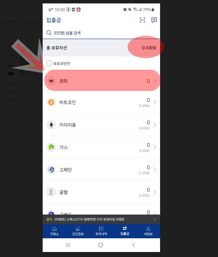 KRW 입금 충전 방법 - 거래하기