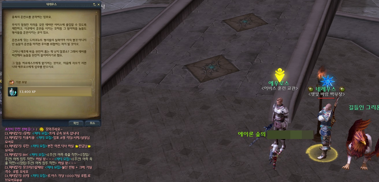 잡는 몹은 제00 드라코뉴트 보충병들 입니다 훈련소에 입장하자마자 앞마당에서 20마리를 잡으시고 퀘스트 완료를 하러 다시 네레우스한테 보고 하시면서 반복 하시면 됩니다