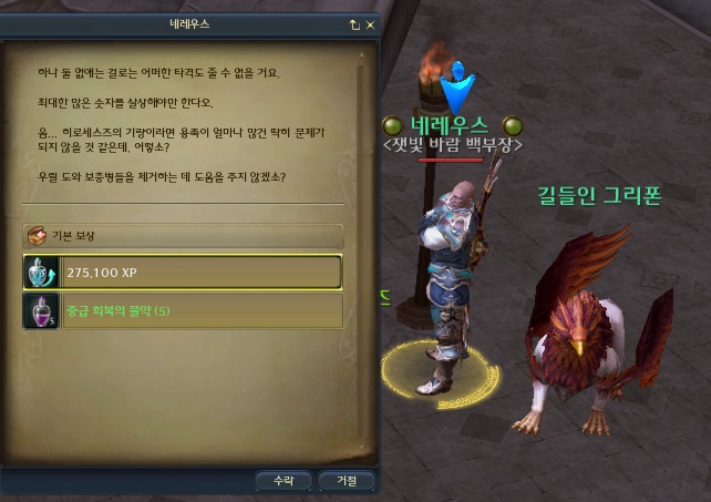 기본보상 경치가 거의 30만이고요 중급 회복의 물약을 줍니다