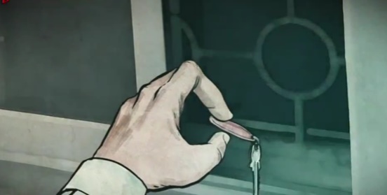 그런데 그 순간... 창문을 보니 복도에 빛이 깜빡 깜빡 보였다