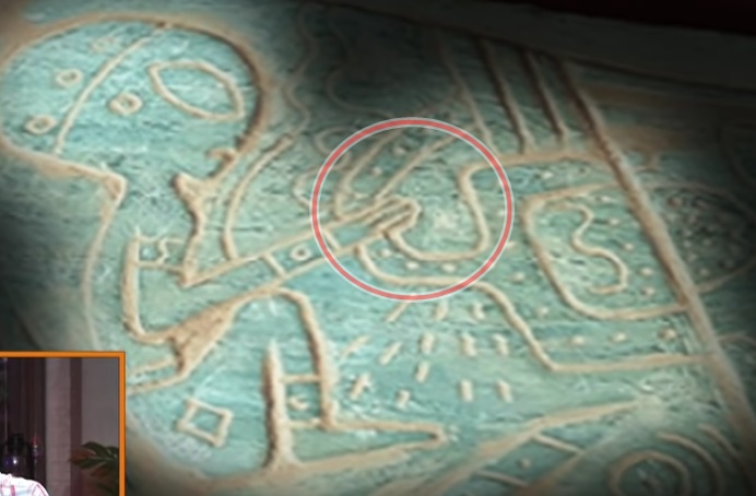 돌 조각에 새겨진 의문의 그림을 보면 생명체가 기계를 조작하는 모습이었다 자세히 보자면 외계인이 우주선(UFO)를 운전 하는 모습이다 이 외계인은 UFO 안에서 기계를 조작 하고 있다