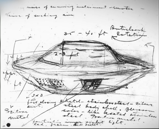 그때 약 45M 상공에서 붉은빛을 내는 두 대의 타원형 기체를 목격 한다
