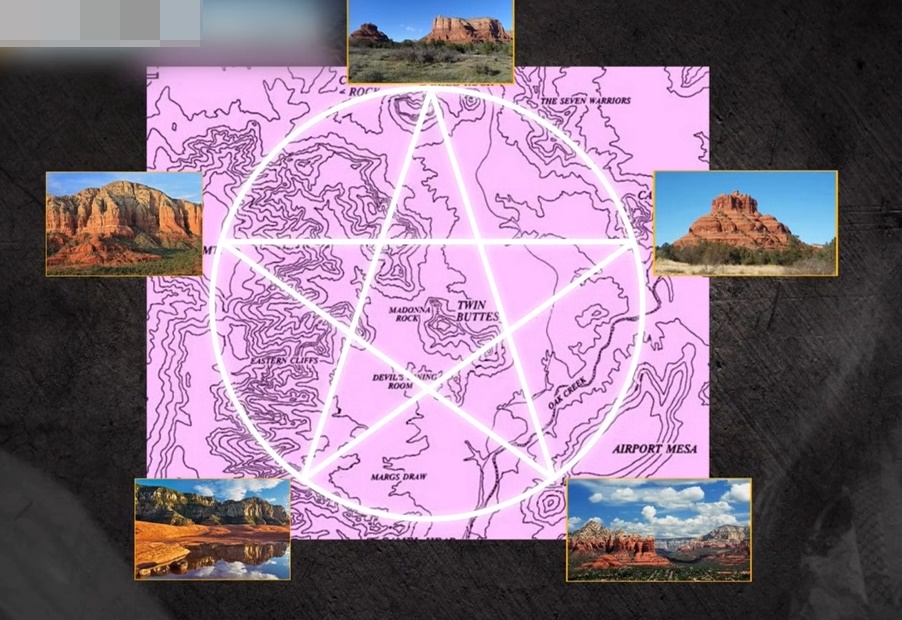 기를 통해 과거를 엿볼수 있다는 대성당 바위, 실제 비행장이 있는 에어포트 메사, 법원 바위, 문즈마운틴, 리마운틴 등 초자연현상이 자주 목격되는 다섯 지점을 연결하면 지도에서 정확히 별 모양의 펜타 도형이 형성 된다