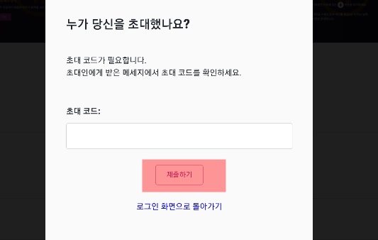 누가 당신을 초대했나요? 화면이 나오면 이 초대코드를 입력 하시면 됩니다