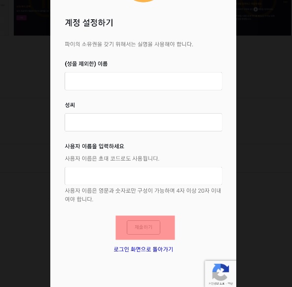계정 설정하기는 이름/성씨를 입력 하시고 사용자 이름은 영문과 숫자로 조합한 닉네임을 입력 합니다