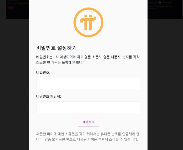 비밀번호 설정하기 화면이 나오면 8자 이상 영문 소문자, 영문 대문자, 숫자를 조합해서 입력하시고 제출하기 버튼을 누릅니다
