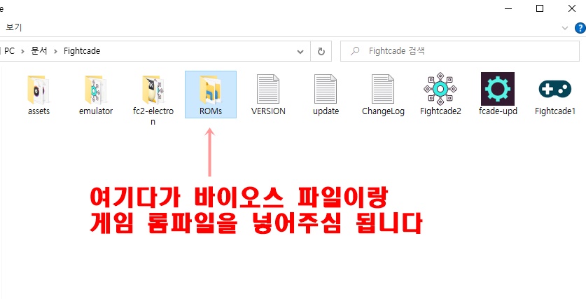 바이오스 파일과 게임 롬파일은 파이트케이드2 설치 폴더에서 ROMs 폴더에 넣어주심 끝납니다