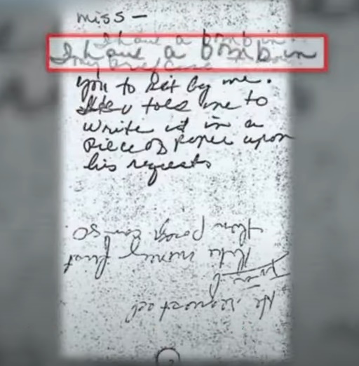 쪽지를 건네받은 승무원은 얼굴이 사색이 되고 말았다