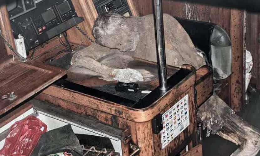 요트 안에는 사진 앨범, 옷, 통조림과 책상에 엎드린 채 미라가 되어있던 한 남성이었다