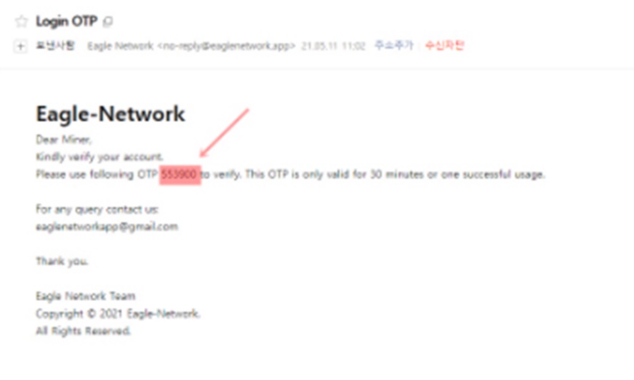이메일로 가셔서 이글 네크워크 인증코드를 복사하셔서 완료 됩니다