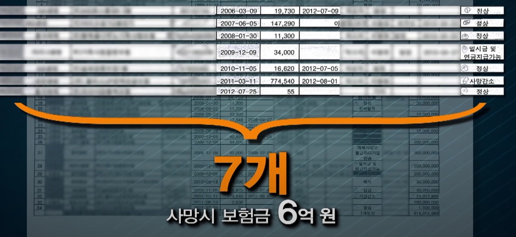 남편은 2006년 부터 크고 작은 질병과 교통사고등으로 꾸준히 보험금을 수령해왔고 남편은 아내가 사망하기 이전에 전형적인 보험범죄 패턴이 진화해왔다