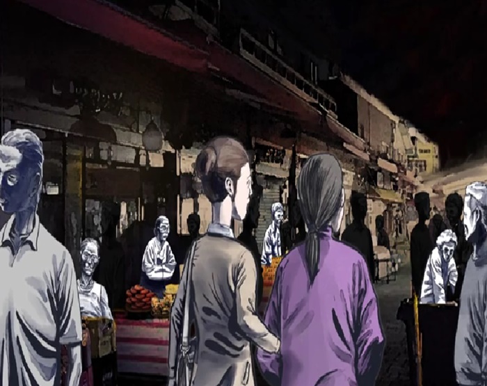 평소 이길은 차도 사람도 많이 지나다니는 활발한 거리였는데 저와 어머니 말곤 아무도 없는 텅 빈 거리였다 더 이상한 건 많은 아파트와 주택들이 있었는데 정전이라도 된 듯 불 켜진 곳이 한 곳도 없었고 문 연 가게도 아예 없었다 마치 죽은 동네 같았다.