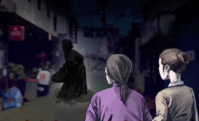 "조용히 해 너 할머니 발소리 들었어? 저 할머니 발이 없어"