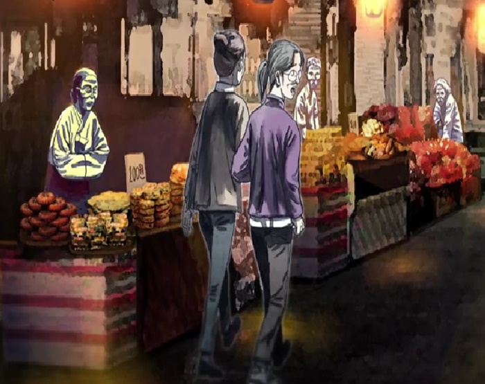 더 이상한 일들이 일어나는데 가게들 마다 등 이 있었는데 상갓집에 쓰는 등 처럼 생겼고 판매하는 물건들마저 구운 생선들을 쌓아놓거나 과일들은 윗부분이 잘린 채 깎여져 있었고 가격은 100원, 200원, 500원으로 너무 저렴했다.