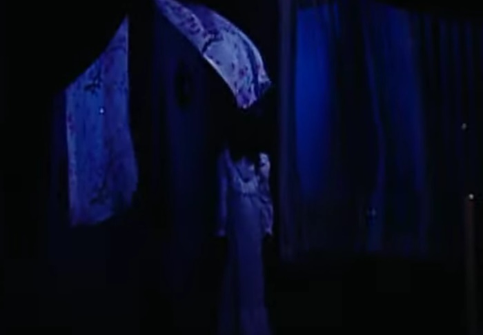 영화속 화면 좌측에 희미한 여자의 형체가 보인다
