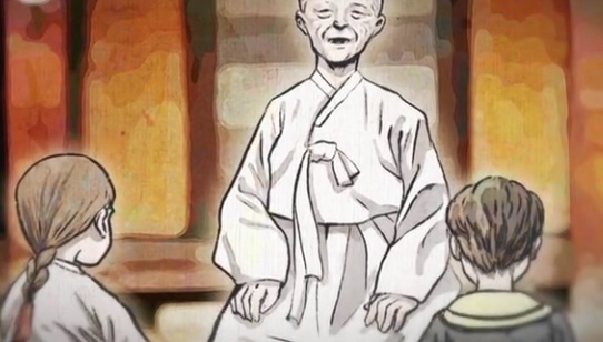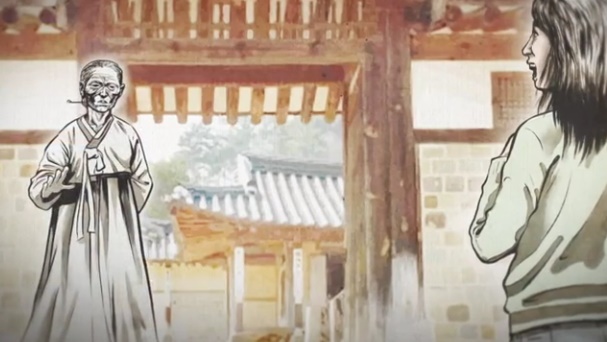 하얀 옷을 입은 할아버지, 할머니들이 계셨고 그 아이는 기와집으로 후다닥 들어가 버렸다