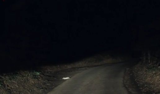 길을 밝히기 위해 상향등을 탁 켰는데 저 앞에 두 사람이 걸어가고 있었다