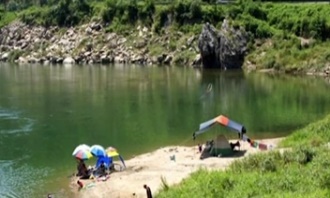 우뚝한 봉우리들에 둘러싸여 있고 숲 사이로 솟은 암벽들, 그 아래로 흐르는 맑은 강이 있다 더운 여름날 많은 사람들은 이 강을 찾는다.