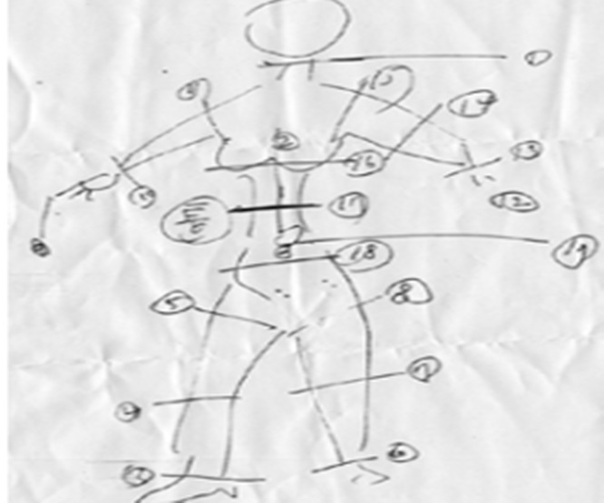 그런데 어떤 남자가 검은 봉지를 들고 서 있는것을 봤는데 옷에는 피가 많이 묻어있었다