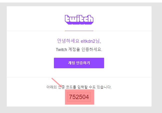 가입한 이메일로 가셔서 인증 코드를 확인하시고 다시 트위치로 와서 인증코드를 입력하셔서 계정 인증을 하시면 됩니다.