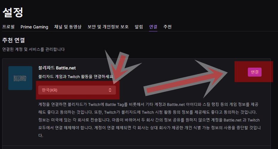 블리자드와 트위치 연결이 끝나면 Battle.net 앱 다운로드를 받습니다 링크바로가기