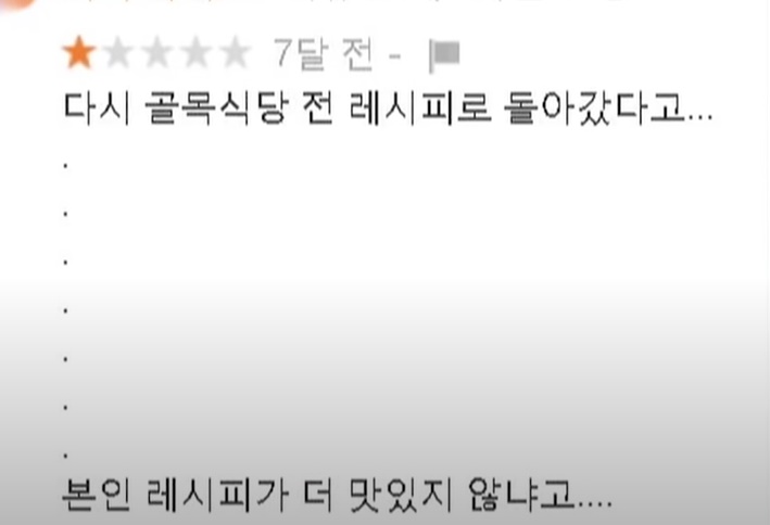 맵고, 약간 짜고, 약간 달고 그렇게 호불호가 갈린다면서 백종원 뒷담화를 까고 있습니다 백종원이 해준 레시피대로 하지 않고 오히러 지금 원래 알려준 것보다 훨씬 더 맛있어졌다며 비난을 했습니다